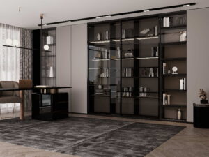 Элегантный шкаф-купе для библиотеки в цвете «Орех французский» станет стильным акцент...