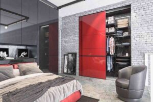 Изготовленный из стекла, шкаф отличается прочностью и устойчивостью к влаге и бытовой химии благодаря алюминиевому профилю. Индивидуальное наполнение позволяет выбрать между гардеробной системой ARISTO с сетчатыми полками и корзинами или полками и выдвижными ящиками из ЛДСП, что обеспечивает удобство и легкий доступ к вещам.