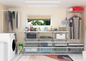 Системы хранения для постирочной: стеллажи, шкафы и модули для бытовой химии, белья и техники.