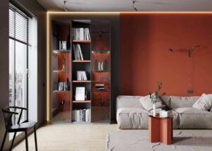 Элегантный стеклянный шкаф-витрина для гостиной или кабинета гармонично впишется в со...