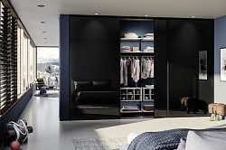 Двери-купе в черном профиле для гардеробной с зеркал...
