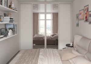 Шкаф-купе в спальню с зеркалом и стеклянными дверями...
